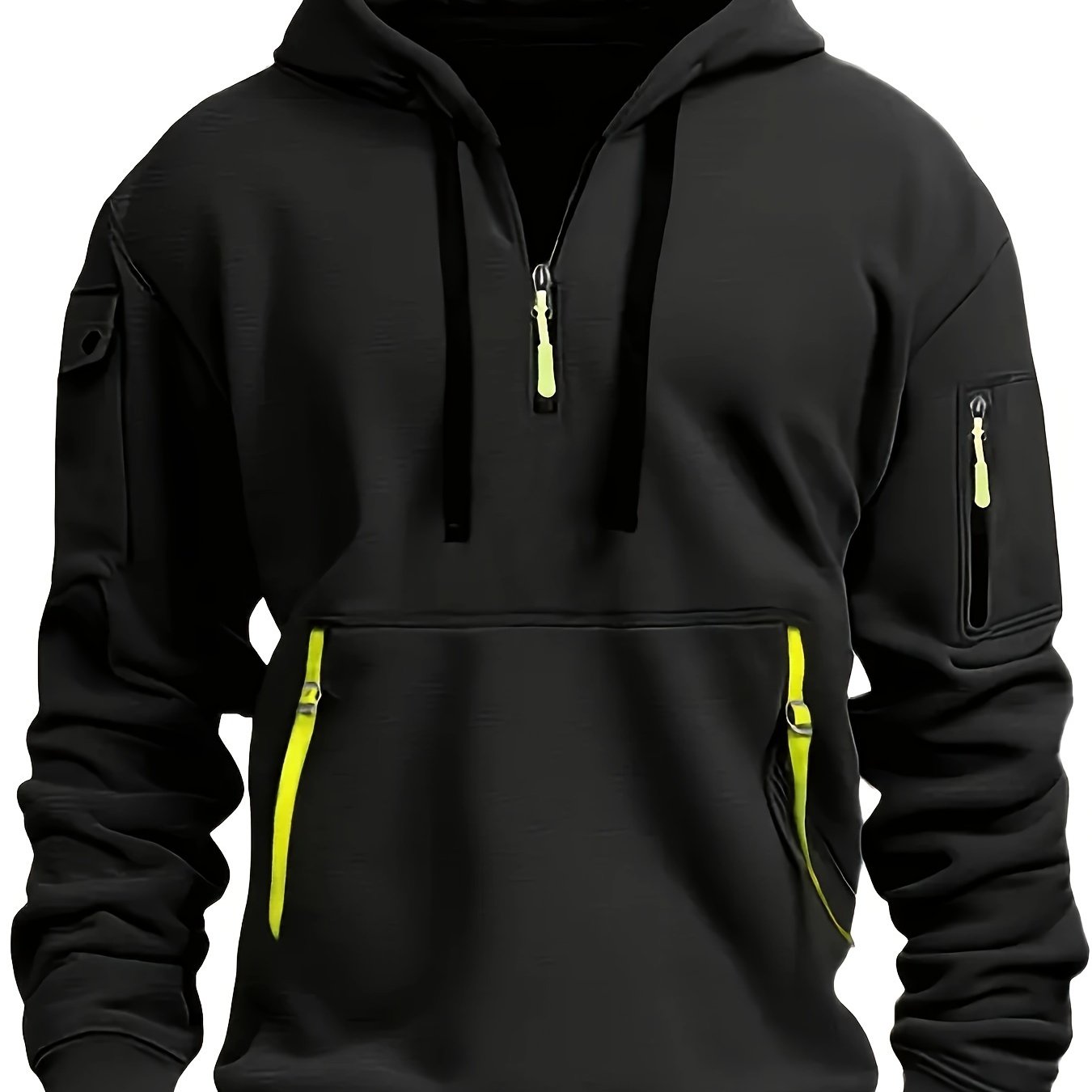 great Men’s Fashion Half Zipped Sports Hoodie With Pockets, Casual Athletic Pullover, Comfortable Fit Sweatshirt With Hood