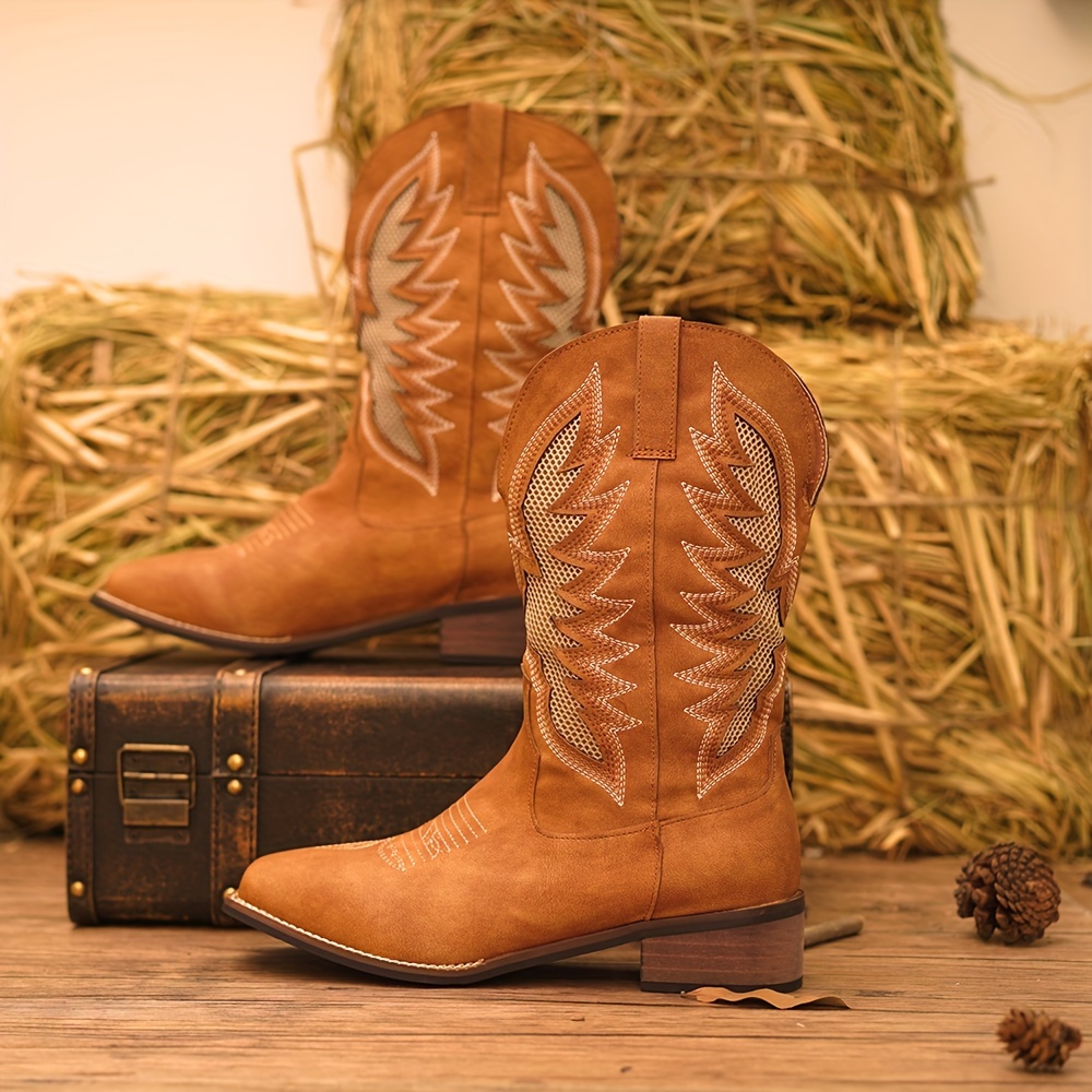 Plus Size Men’s Vintage Retro Embroidered Slip On Knee High Top Cowboy Boots, Comfy Non Slip Casual Durable Rubber Sole Riding Shoes, Men’s Footwear