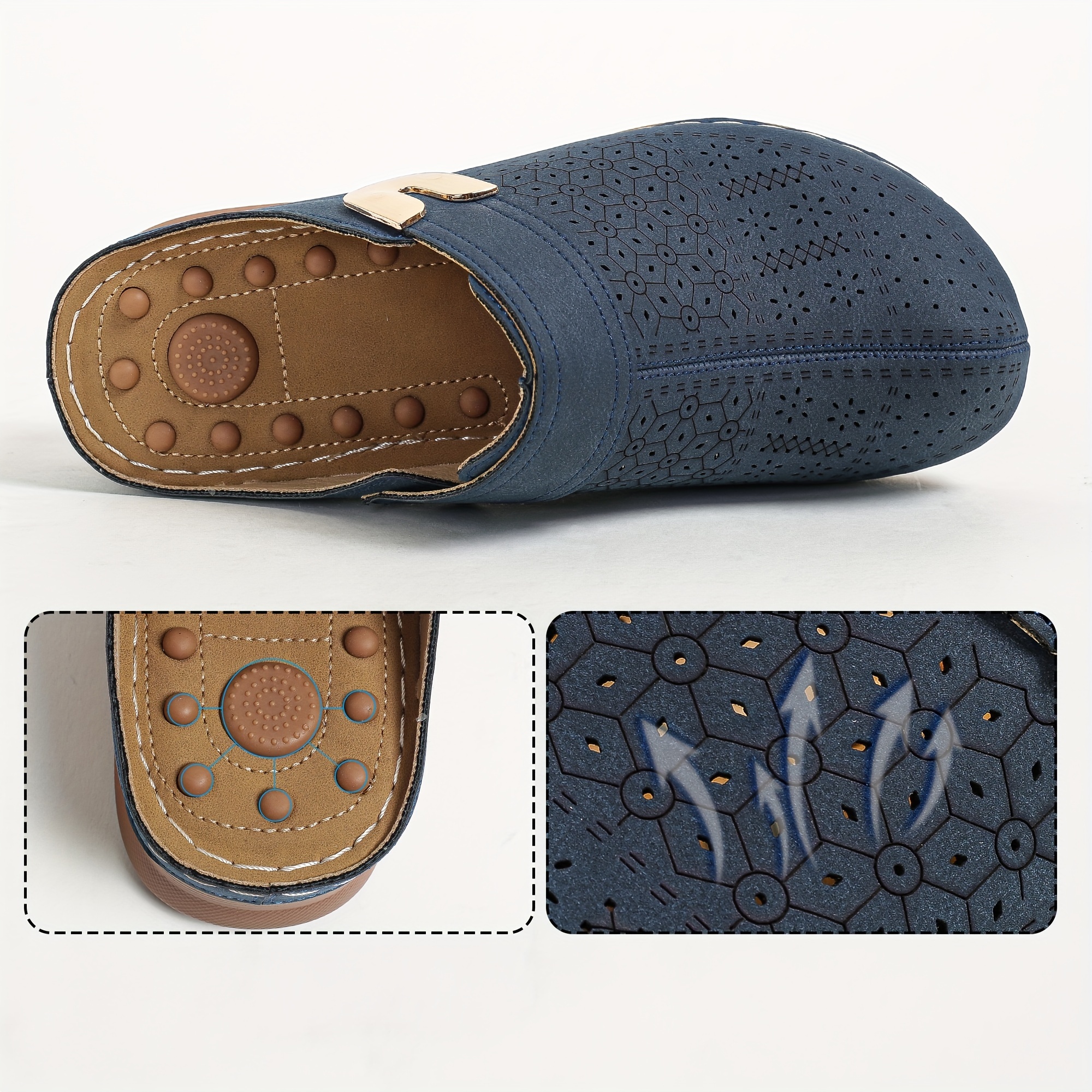 womens retro wedge mules comfortable closed toe slip on slide sandals casual outside slide shoes details 4