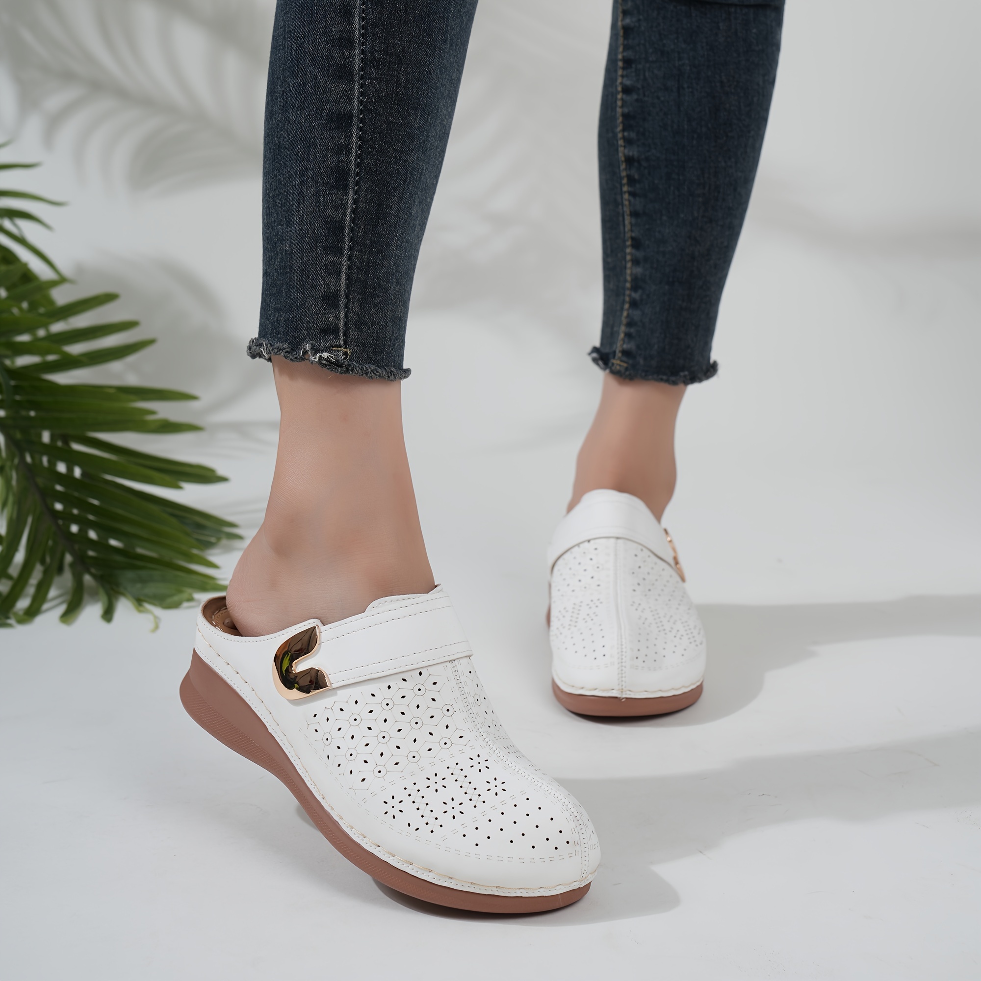womens retro wedge mules comfortable closed toe slip on slide sandals casual outside slide shoes details 6